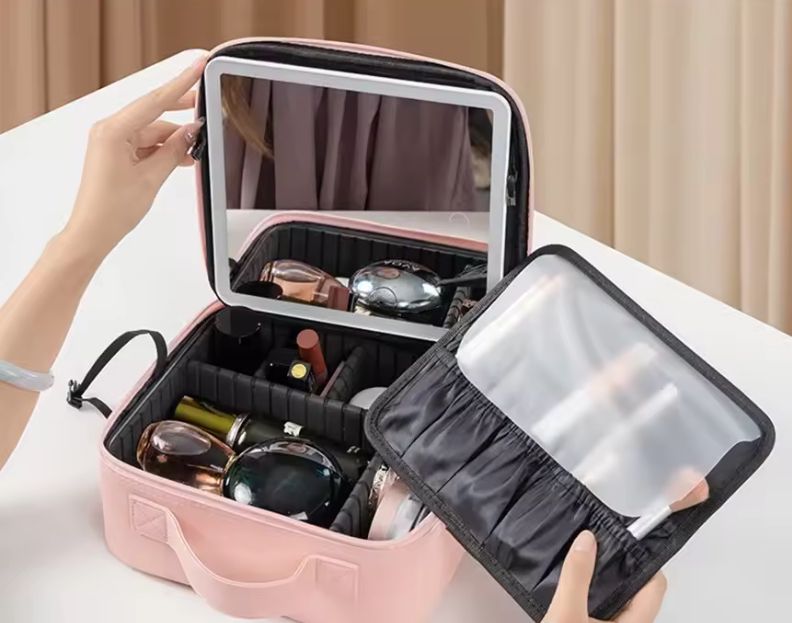 Nuestra Cosmetiquera Profesional integrada con Espejo LED es perfecta para quienes aman el orden, el estilo y la practicidad. Incluye luces LED con 3 tonos ajustables, compartimientos desmontables y un diseño portátil ideal para viajes o uso diario sin perder elegancia y estética.